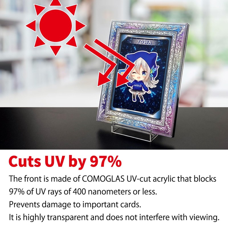 - [Iron-clad Guard]:With:D's display case guards the beauty and value of your cards. Unprecedented transparency and the highest class 98% UV cut rate bring out the best in your cards. Diamond cut by hand by Japanese craftsmen to create a luxurious feel. We have achieved both the highest UV performance while feeling the highest quality of Japan.