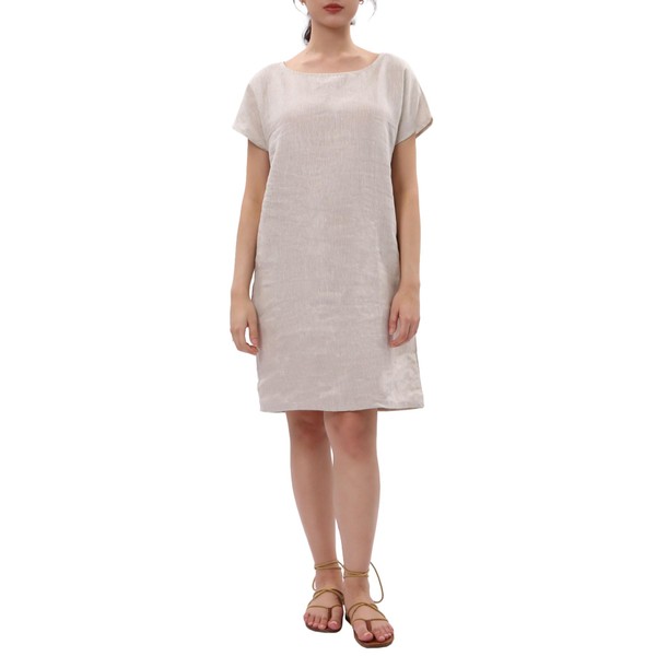Amazhiyu Womens 100% Linen Summer Casual Crew Neck Midi Dresses with Pockets Flax, Small