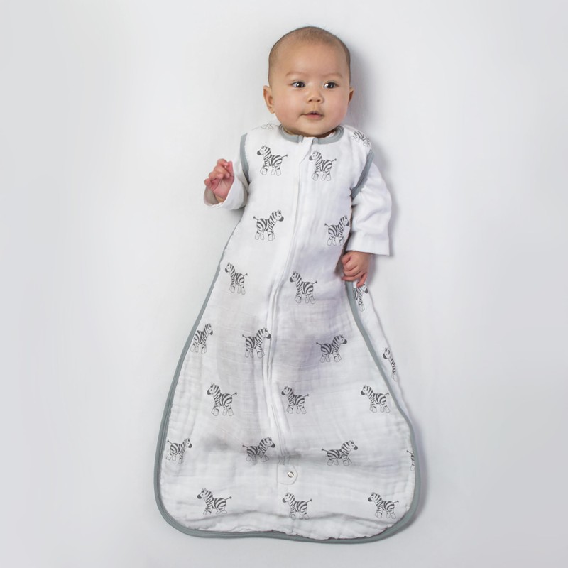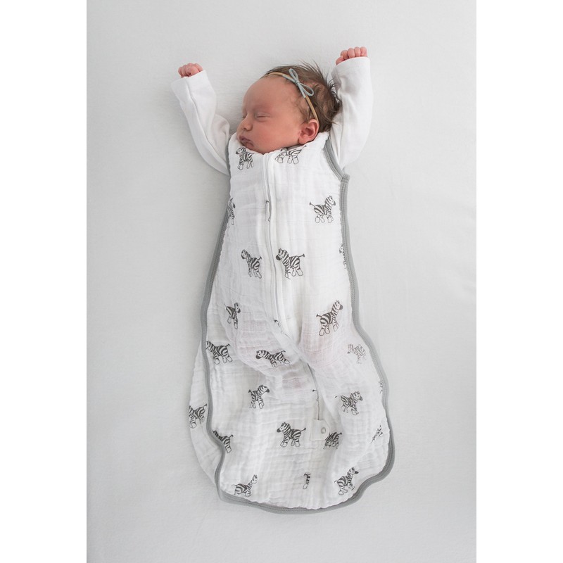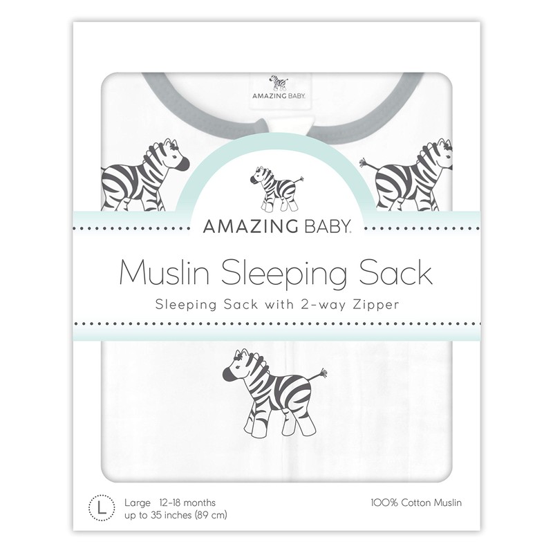 Amazing Baby Muslin Sleeping Sack with 2-Way Zipper, Zebra, Black, Large