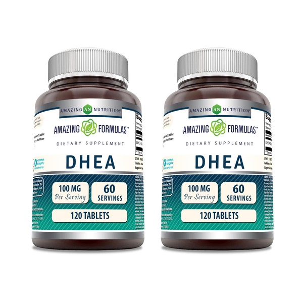 Amazing Formulas DHEA Supplement | 100 Mg | 120 Tablets | Non-GMO | Gluten Free | Made in USA (Pack of 2)
