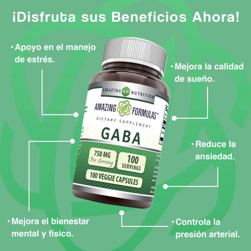 Amazing Formulas GABA 750mg 100 Cpsulas Vegetales Suplemento Reduccin del estrs, Ansiedad, Mejora del sueo, Apoyo a la Salud Mental, Relajacin...