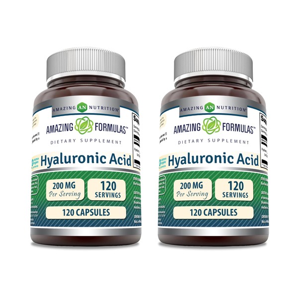 Amazing Formulas Hyaluronic Acid Supplement | 200 Mg Per Serving | 120 Capsules | Non-GMO | Gluten Free | Made in USA | Pack of 2