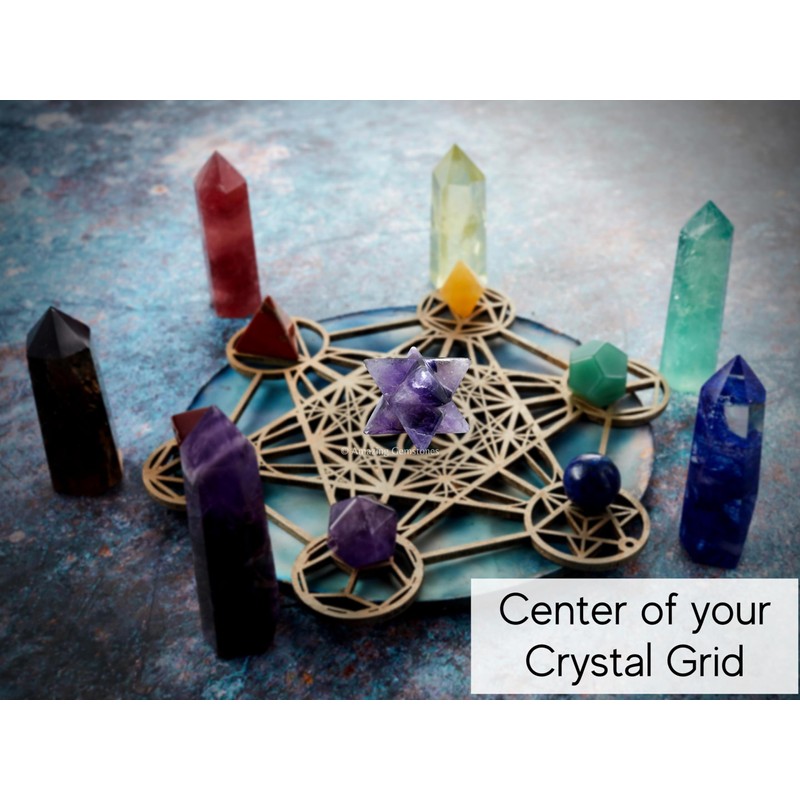 - Exquisite Merkaba Star Stones : Our Amethyst Merkaba showcases an exquisite star stones gemstone, embodying the unique beauty of nature. This crystal's captivating patterns make it a magnificent addition to any collection.