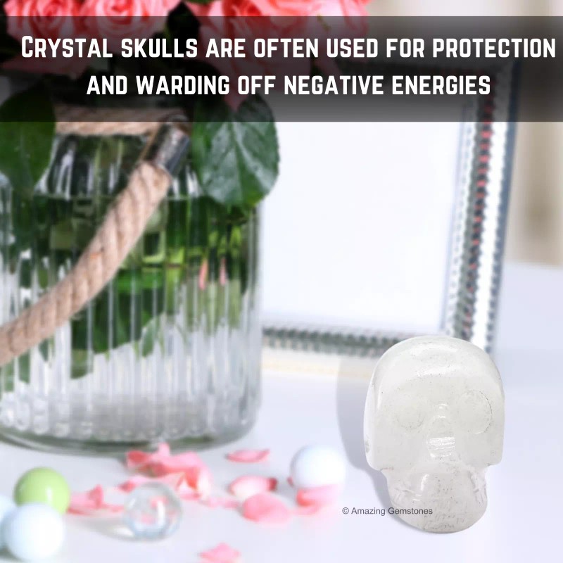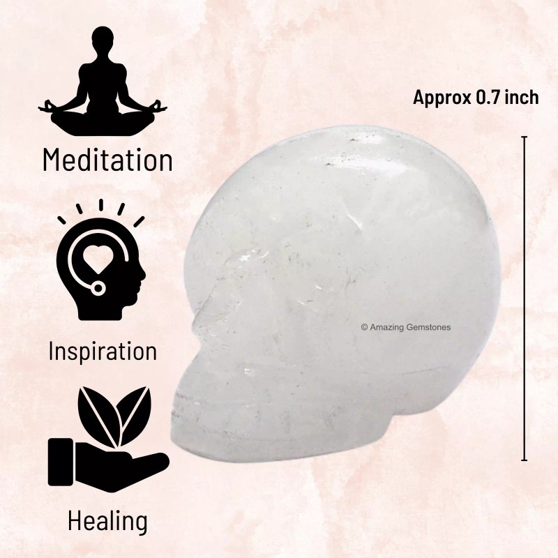 Our 0.75 inch Snow Quartz Skull, a small but powerful companion that adds a touch of mystique to your space. This miniature skull embodies both charm and energy.