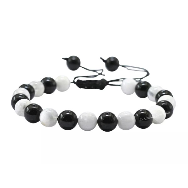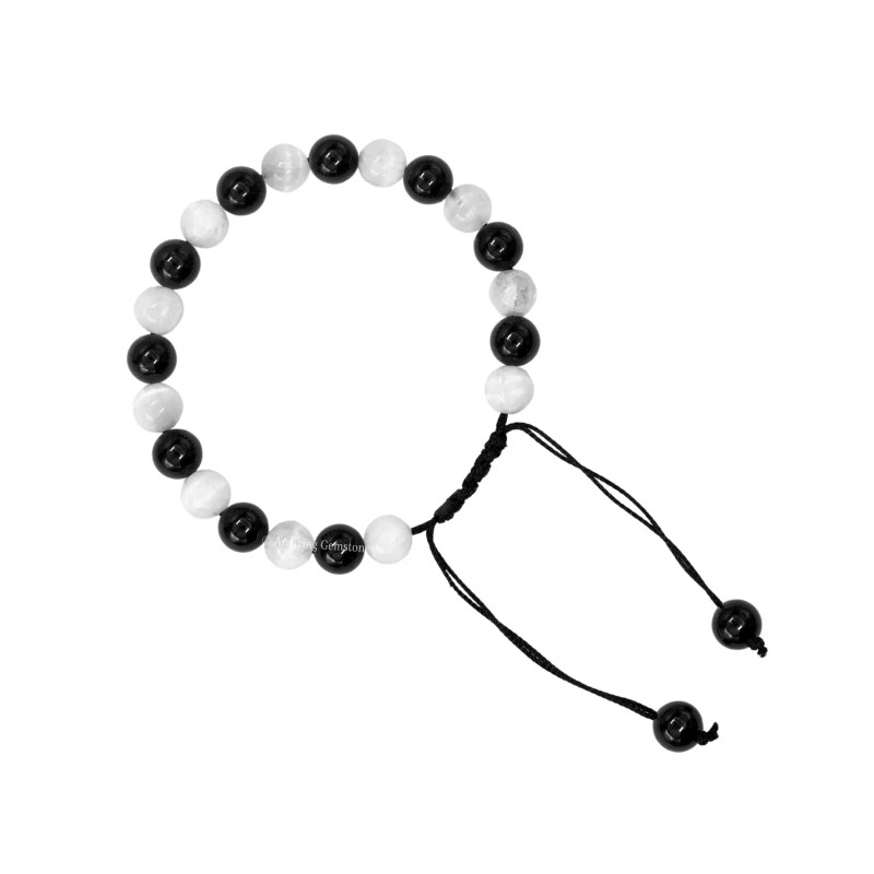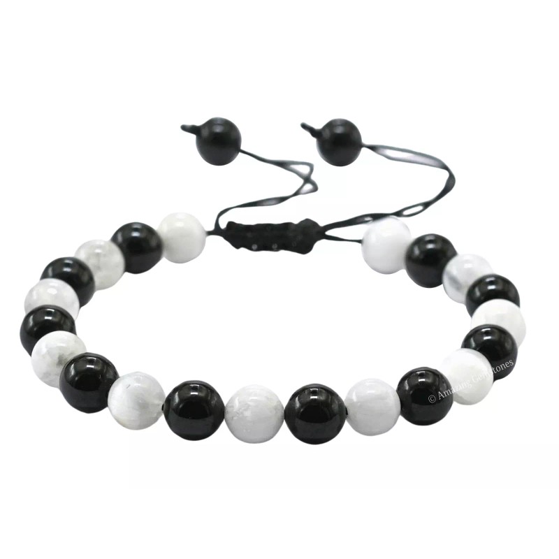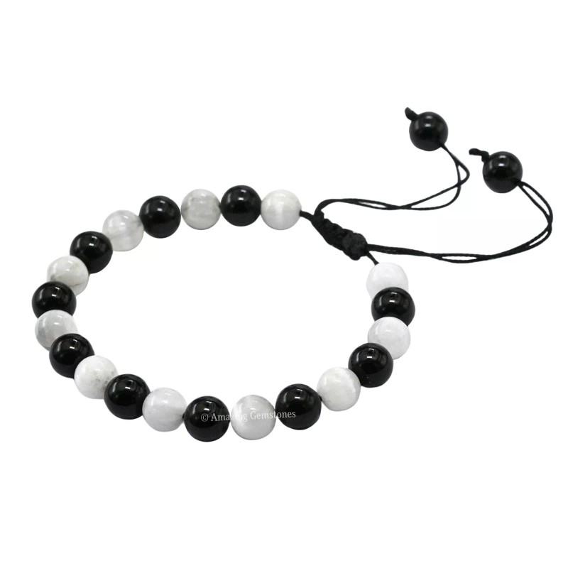 Amazing Gemstones Selenite Black Tourmaline Bracelet - Adjustable
