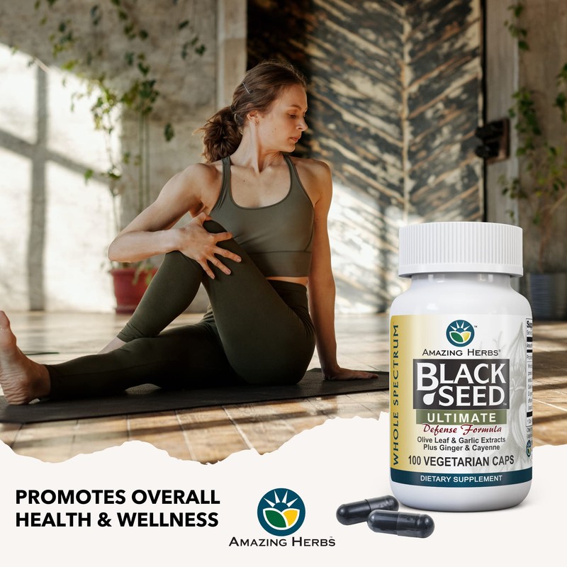 Amazing Herbs Whole Spectrum Black Seed Ultimate, Vegetarian Capsules - Olive Leaf & Garlic Extracts Plus Ginger & Cayenne, Gluten Free, Non GMO, Vegan - 100 Count