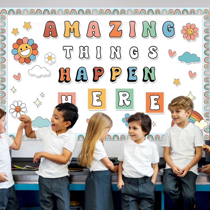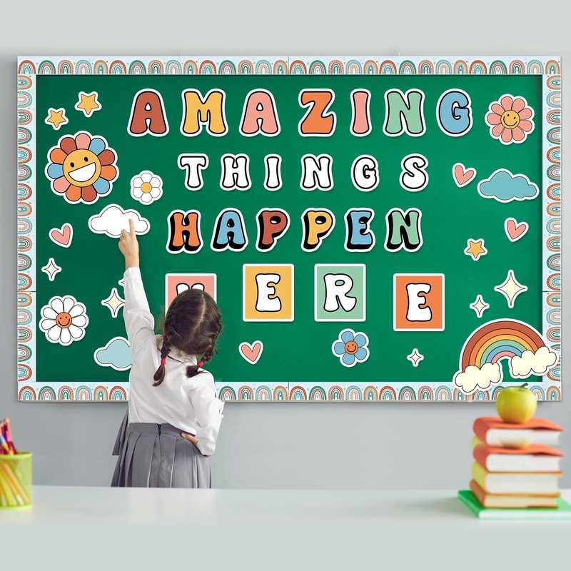 Amazing Things Happen Here Bulletin Board Boho Bulletin Board Decoration Set Inspirational Amazing Rainbow Bulletin Board Welcome Bulletin Board for Back to School Classroom Wall Decor