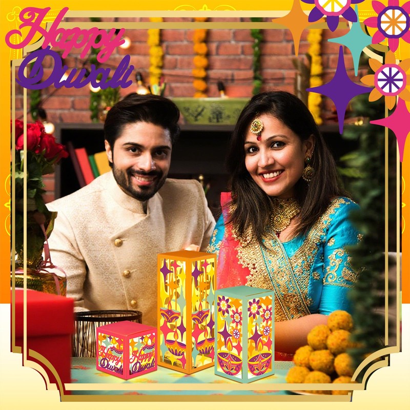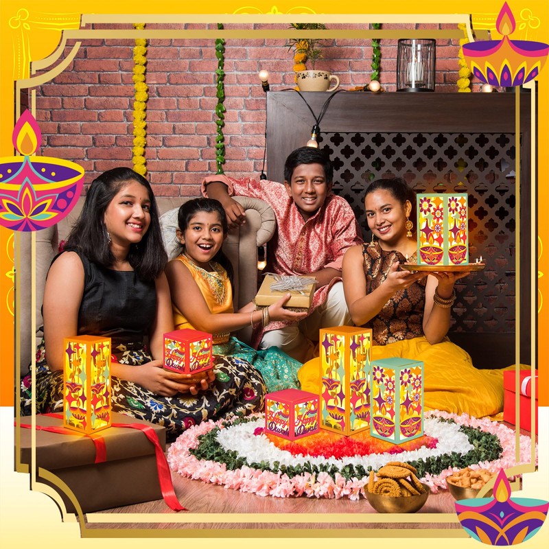 AmazingSpark 6 Set Diwali Table Centerpieces Happy Diwali Lantern Box with LED Light Up Deepavali Centerpieces Indian Festival of Lights Table Decors for Celebration Festival Birthday Party Supplies