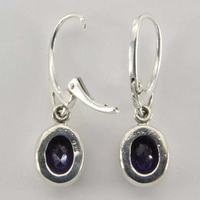 Amber America Blue Oval IOLITE Earrings 925 STERLING SILVER Leverback - Natural Gemstone #30e