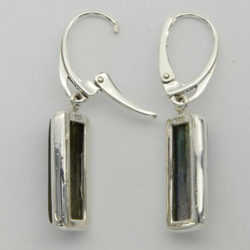 Amber America Genuine Rectangle Square LABRADORITE Earrings 925 STERLING SILVER Leverback #2e