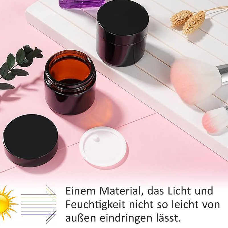 Amber Glass Empty Jar, Pack of 6 Cream Jars, Empty, 50 ml Cream Jars for Filling, Brown Glass Container with Lid, Empty Refillable, for Creams, Lotions, Powder, Mini Candles (Black)