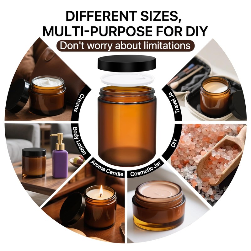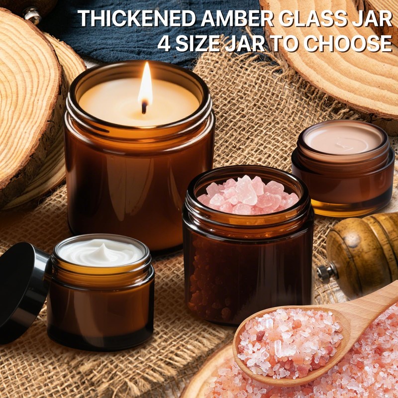 - [4 Sizes Amber Glass to Versatile Storage] - Includes 8oz, 4oz, 2oz, and 1oz glass lotion jars to meet various needs, from storing body butter and scrubs to travel-sized creams or samples.