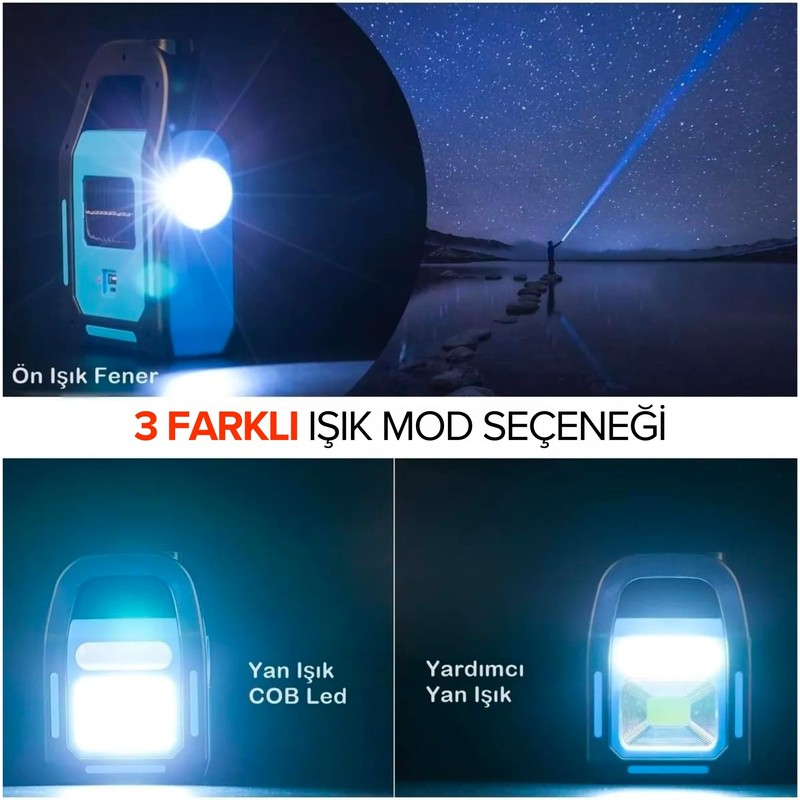 - Uygulama Alanları: 3'ü 1 arada güneş kamp feneri, açık hava, kamp, yürüyüş, acil durumlar vb. Günlük ihtiyaçlar için uygundur