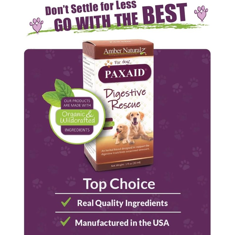Amber NaturalZ Paxaid Digestive Rescue Herbal Supplement for Dogs and Puppies | Canine Herbal Supplement for Occasional Digestive Upset Support | 1 Fluid Ounce Glass Bottle | Manufactured in The USA
