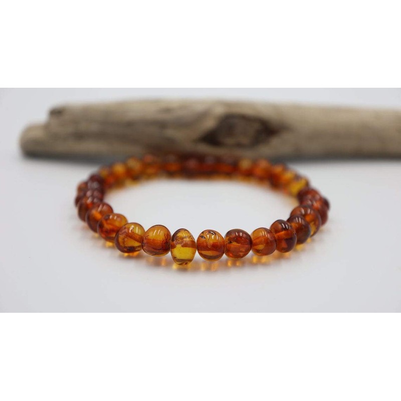 amber-us Baltic Amber Bracelet on Elastic Band | Multiple Length | Multiple Colours | Made from Natural Authentic Round Amber Beads | Amber Bracelet, Amber, elastic band