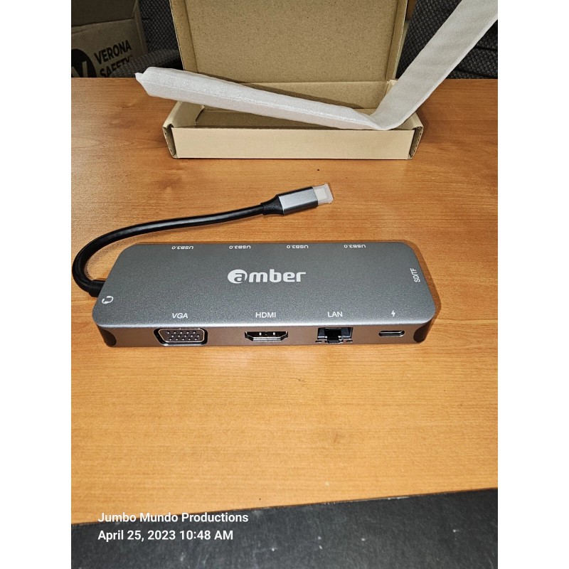 Amber USB-C Hub USB 3.1 Adapter 4K HDMI Dock LAN VGA SD Card Reader. USB-C port Laptop
