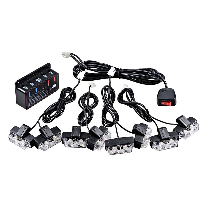 - PACKAGE CONTENTS: 4X Ultra Slim 6 LED Car Strobe Flash Lights + 8X 2-LED Strobe Light + Mounting Wires Accessories + On/Off Pattern Switch + Control Box