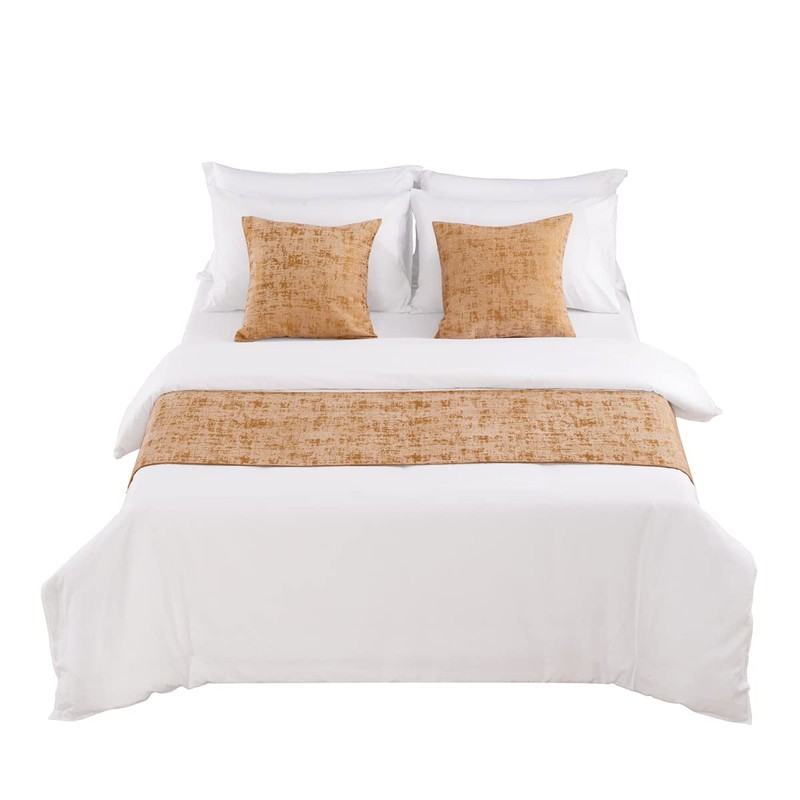 AMBERIS Bed Runner Gold, Chenille Soft No Fading Modern Bed Scarf