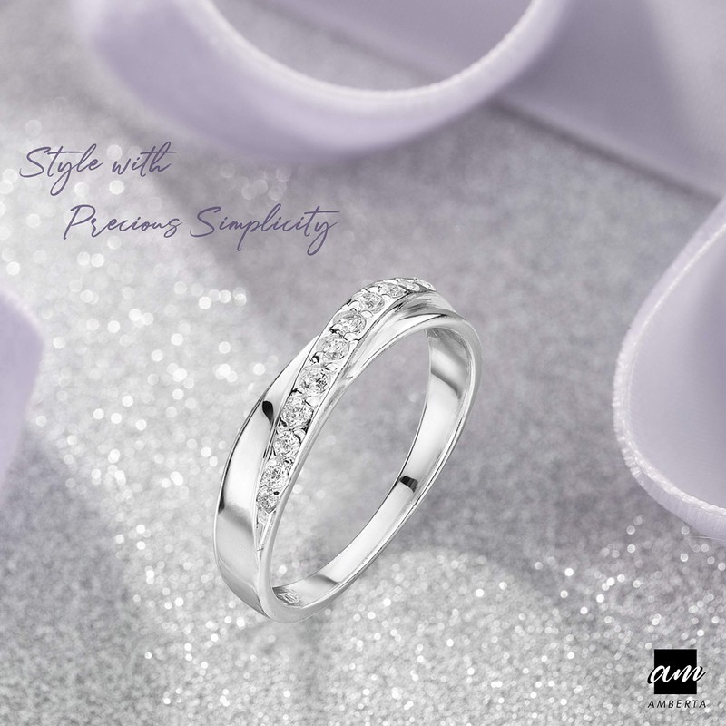 Amberta Women's 925 Sterling Silver Ring Crossover Band with Zirconia Stones: Inside Circumference 53.8 mm - Size N