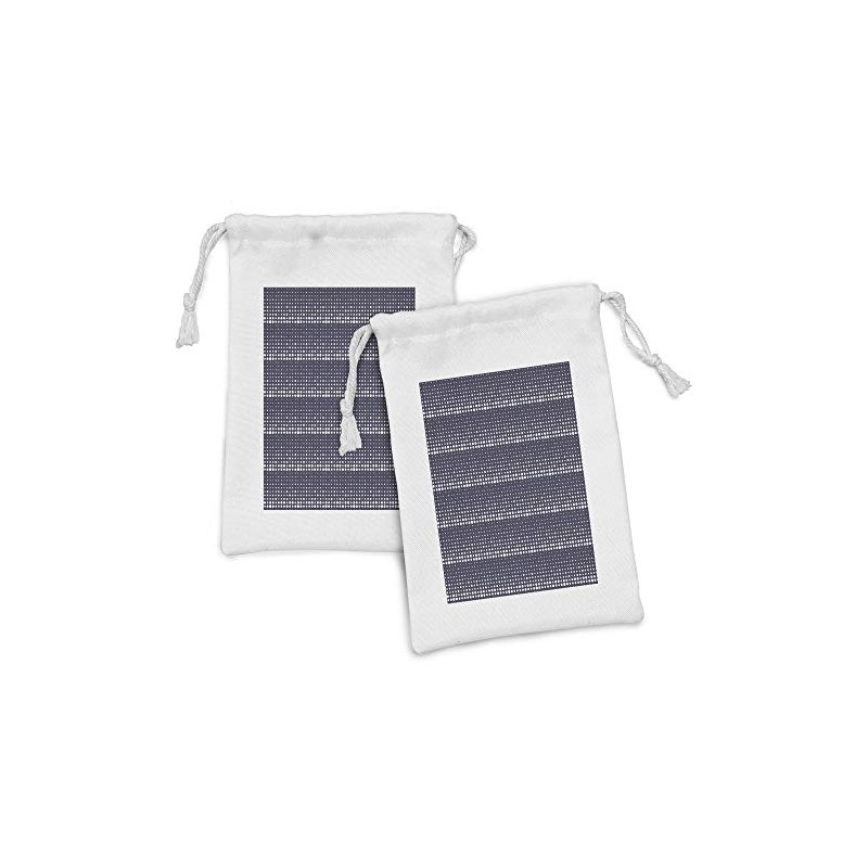 Ambesonne Abstract Fabric Pouch Set of 2, Horizontally Formed Polka Dotted Flows Geometric and Nostalgic Details, Small Drawstring Bag for Toiletries Masks and Favors, 9" x 6", Dark Indigo and White