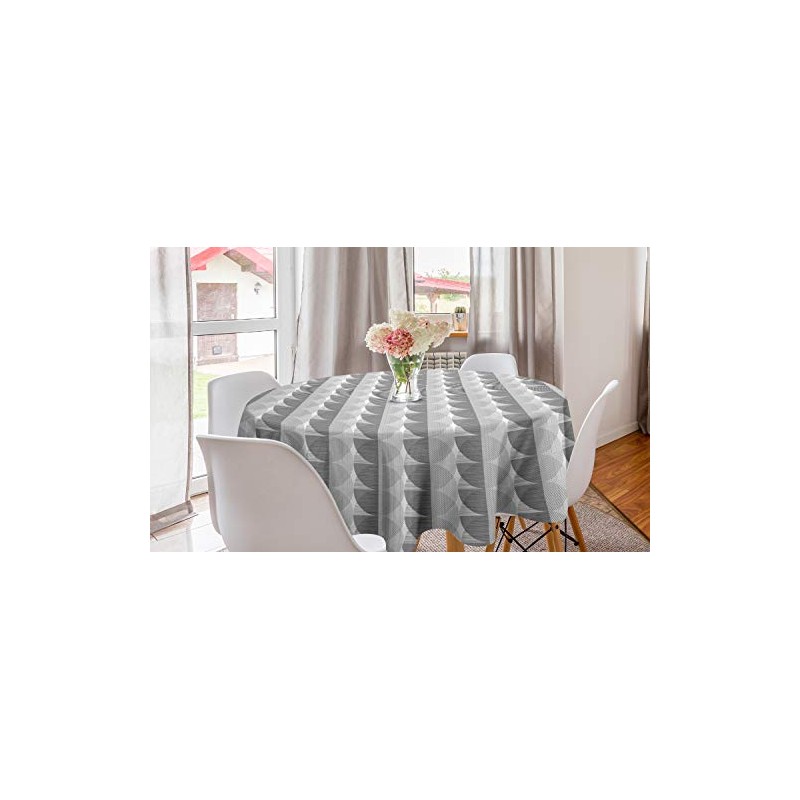 Ambesonne Abstract Round Tablecloth, Contemporary Graphic Circles Digitally Drawn Along Checkered Lines, Circle Table Cloth Cover for Dining Room Kitchen Decoration, 60", Pale Grey Black and White