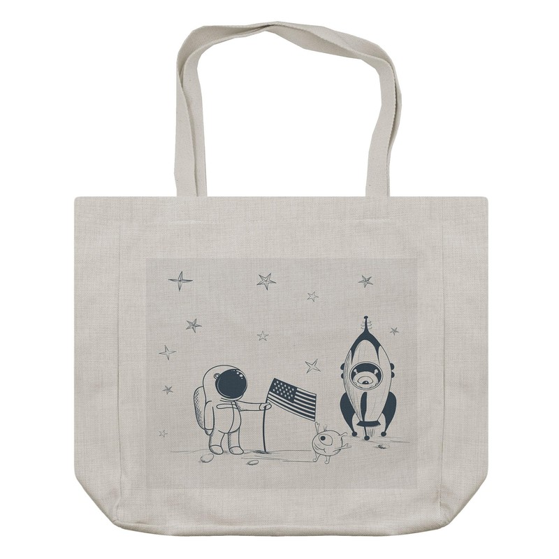 Ambesonne Astronaut Shopping Bag, Cosmonaut with Aliens on New Planet Planting United States Flag Graphic, Eco-Friendly Reusable Bag for Groceries Beach and More, 15.5" X 14.5", Cream