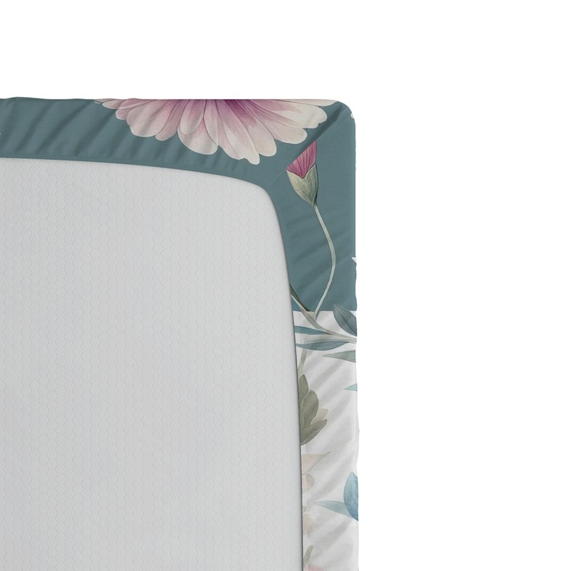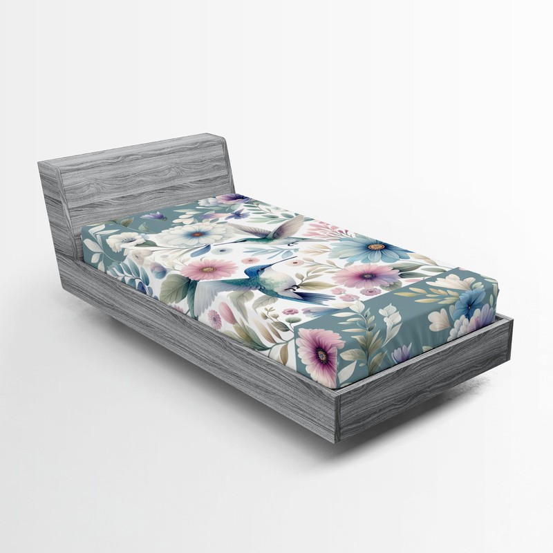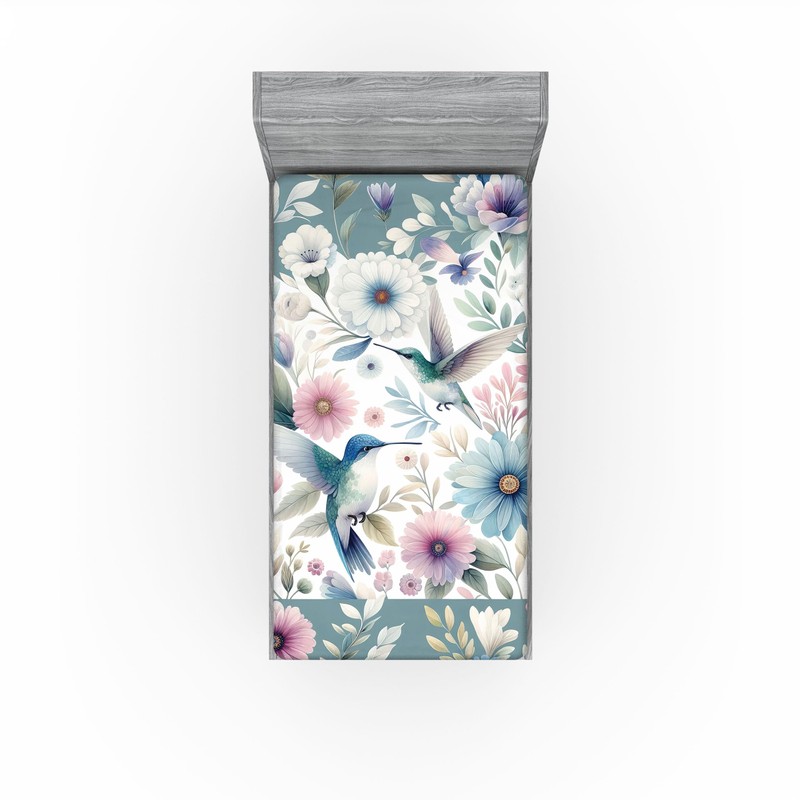 Ambesonne Birds and Nature 2 Pack Fitted Sheet, Peaceful Flowers, Bed Cover All-Round Elastic Deep Pockets 2 Pieces, Package Contains 2 Twin Size Fitted Sheets, Dark Sea Green Blush Teal