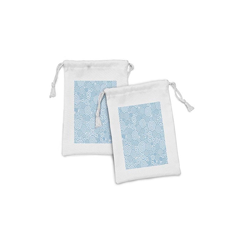 Ambesonne Blue and White Fabric Pouch Set of 2, Abstract Swirls Ocean Sea Inspired Pattern in Modern Hand Drawn Style, Small Drawstring Bag for Toiletries Masks and Favors, 9" x 6", Blue and White