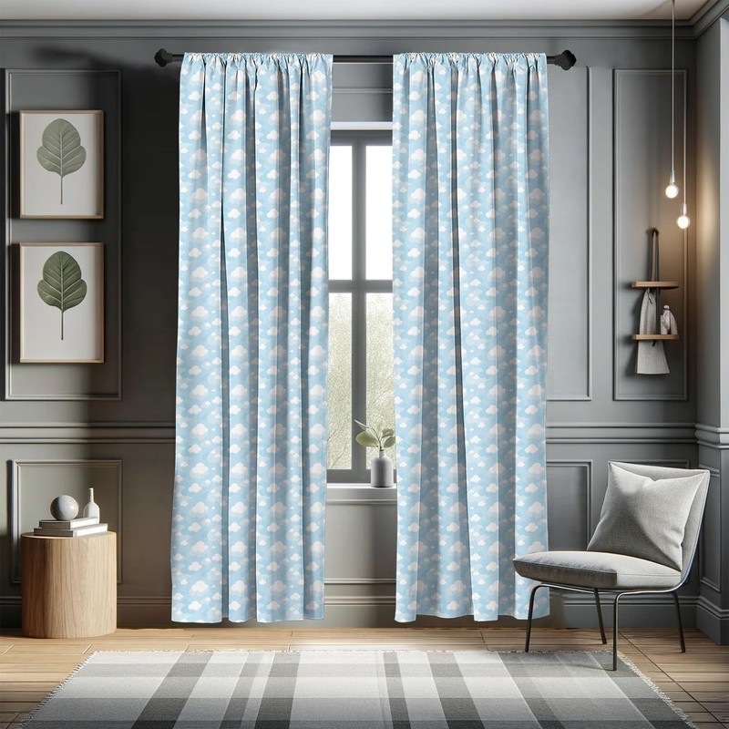 Ambesonne Blue Sky Window Curtains, Continuous Fluffy Clouds Motifs Cartoon Style Rhythmic Design Pattern, Lightweight Decor 2-Panel Set with Rod Pocket, Pair of - 28" x 84", Blue White