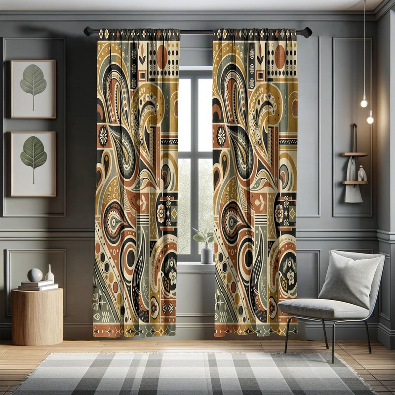 Ambesonne Bohemian Window Curtains Pack of 2, Ethnic Pattern with Paisley For...