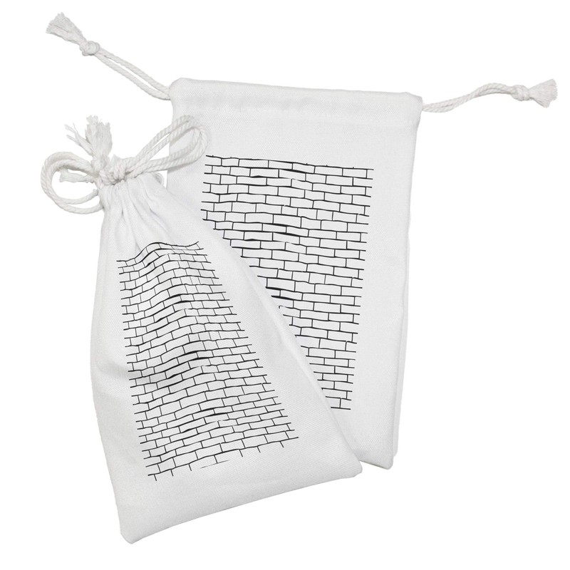 Ambesonne Brick Wall Fabric Pouch Set of 2, Black and White Hand-drawn Stonewall Design Urban Architecture City Theme, Small Drawstring Bag for Toiletries Masks and Favors, 9" x 6", Black and White