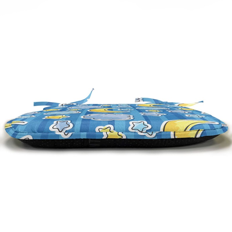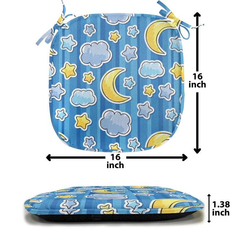 Ambesonne Cartoon Chair Seating Cushion Set of 2, Abstract Skyline with Stars Clouds and Crescent Moon Vertical Striped Doodle Art, Anti-Slip Seat Padding for Kitchen & Patio, 16"x16", Yellow Blue