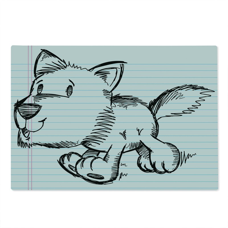 Ambesonne Cartoon Cutting Board, Scribble Art of a Running Puppy Dog on a Not...