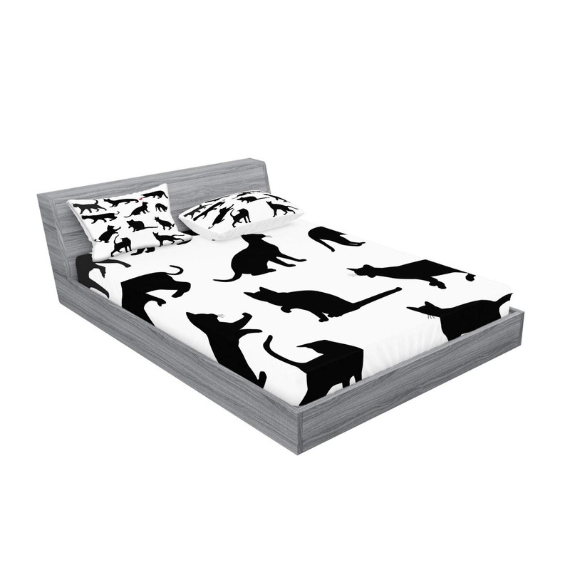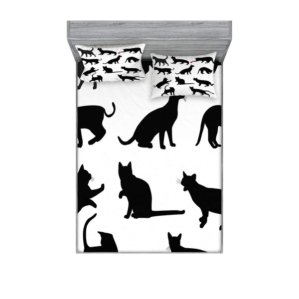 Ambesonne Cat Fitted Sheet & Pillow Sham Set, Silhouette of Kittens in Variou...