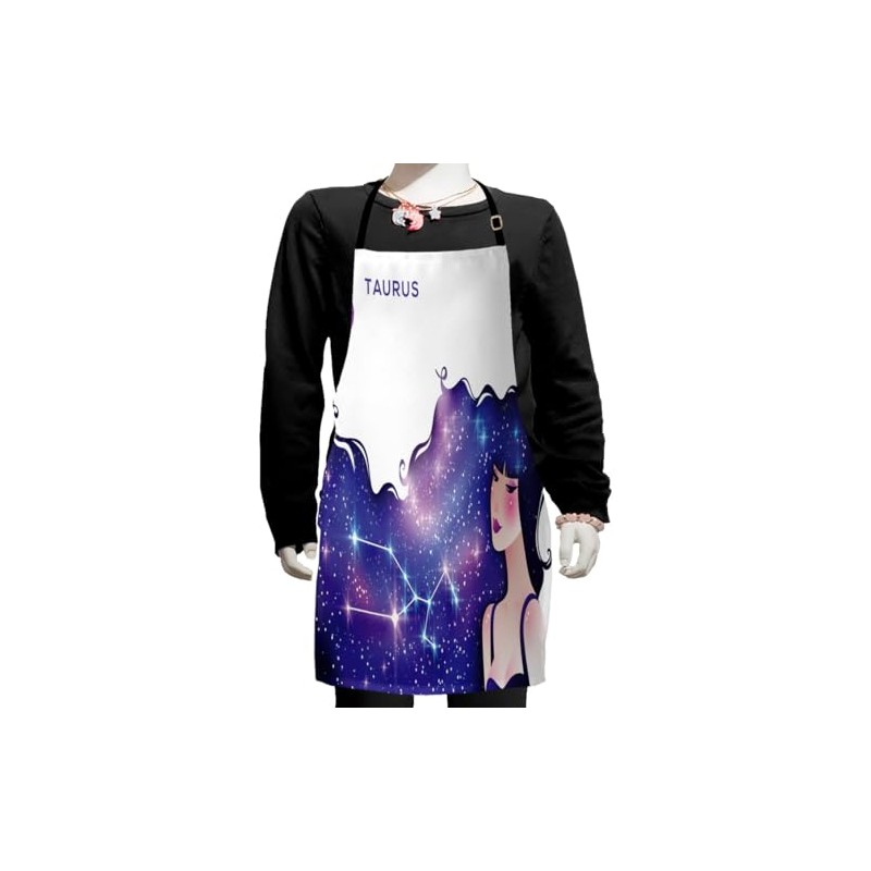 Ambesonne Celestial Apron, Taurus Zodiac with Constellation on Woman's Hair Print, Small Apron Bib with Adjustable Ties for Baking Painting, Small Size, Fuchsia Indigo