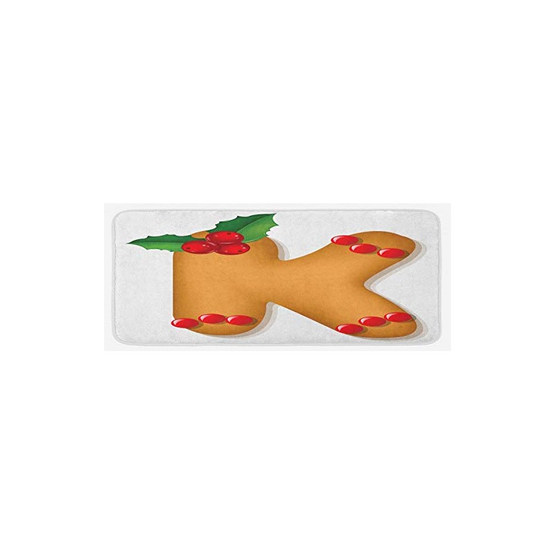 Ambesonne Christmas Alphabet Kitchen Mat, Xmas Thematic Design of Gingerbread Baked Cookie Letter K, Plush Decorative Kitchen Mat with Non Slip Backing, 47" X 19", Ginger Vermilion White
