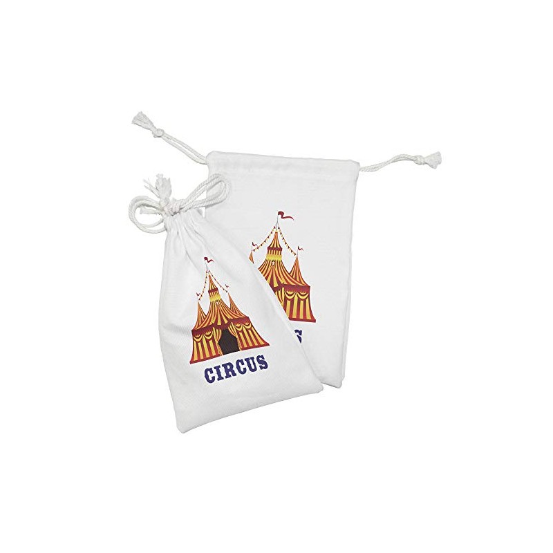 Ambesonne Circus Fabric Pouch Set of 2, Illustration of Old Striped Tent in Retro Style Old Fashion Joy Theater Art, Small Drawstring Bag for Toiletries Masks and Favors, 9" x 6", Red Yellow White