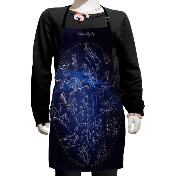 Ambesonne Constellation Apron, Antique Sky Map Hand Drawn Mythological History Galaxy, Small Apron Bib with Adjustable Ties for Baking Painting, Small Size, Blue Dark Blue Beige
