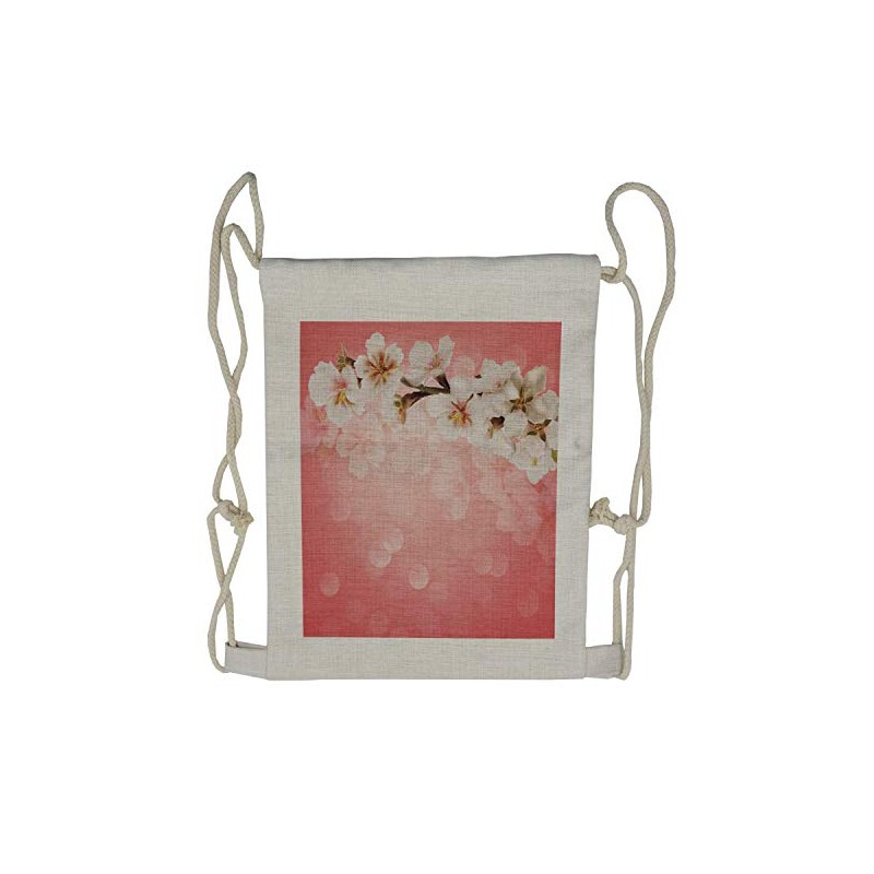 Ambesonne Coral Drawstring Backpack, Blossoming Sakura Branch, Sackpack Bag