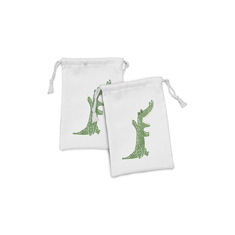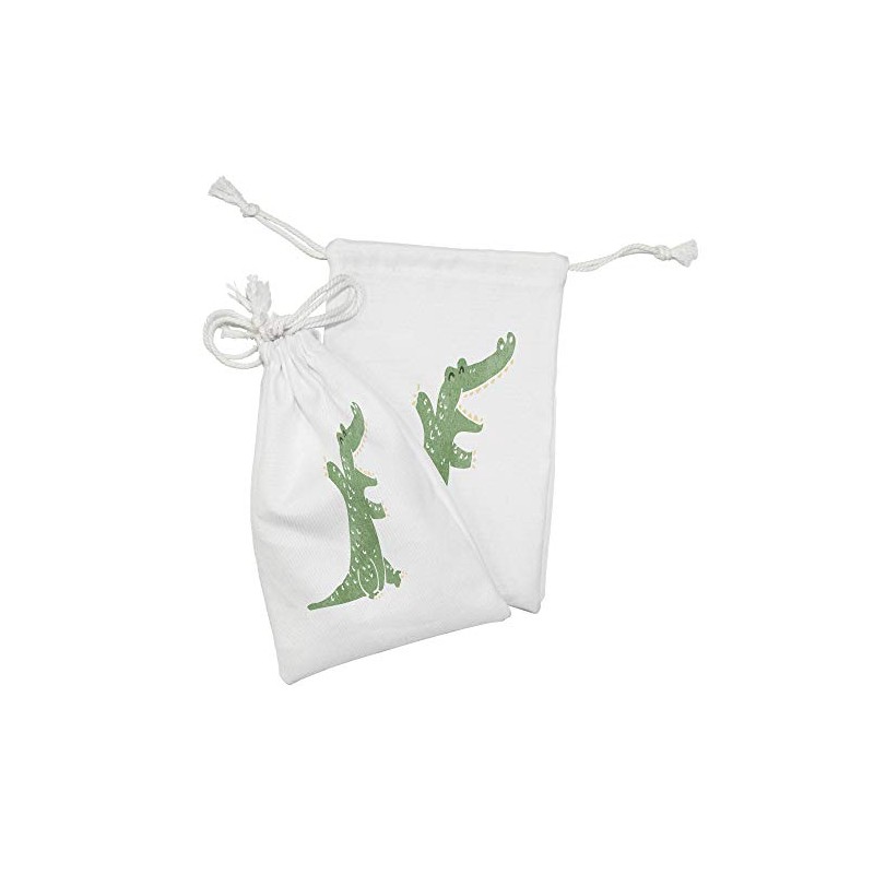 Ambesonne Crocodile Fabric Pouch Set of 2, Pattern of a Funky Creature Laughing on a Plain Background, Small Drawstring Bag for Toiletries Masks and Favors, 9" x 6", Peacock Green Beige