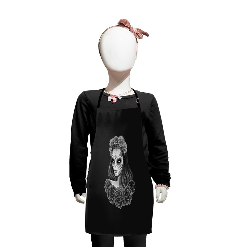 Ambesonne Day of The Dead Apron, Gothic Young Girl in Calavera Make up Hairstyle Roses, Small Apron Bib with Adjustable Ties for Baking Painting, Small Size, Charcoal Grey Pale Grey