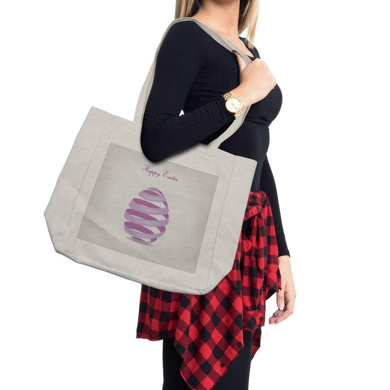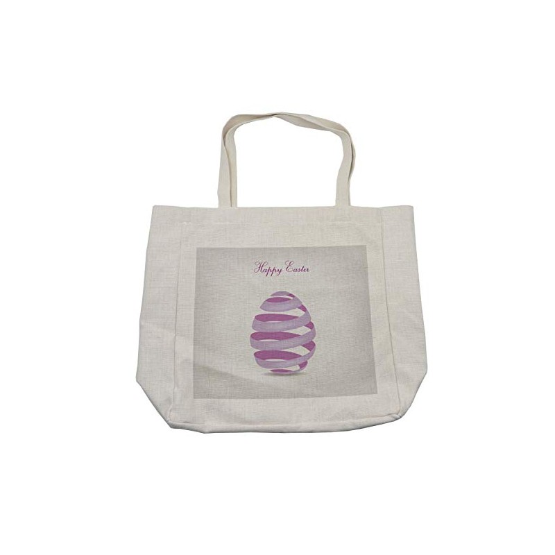 Ambesonne Easter Shopping Bag, Ornate Ribbon in Egg Shape Spring Easter Holiday Seasonal Celebrations, Eco-Friendly Reusable Bag for Groceries Beach and More, 15.5" X 14.5", Cream