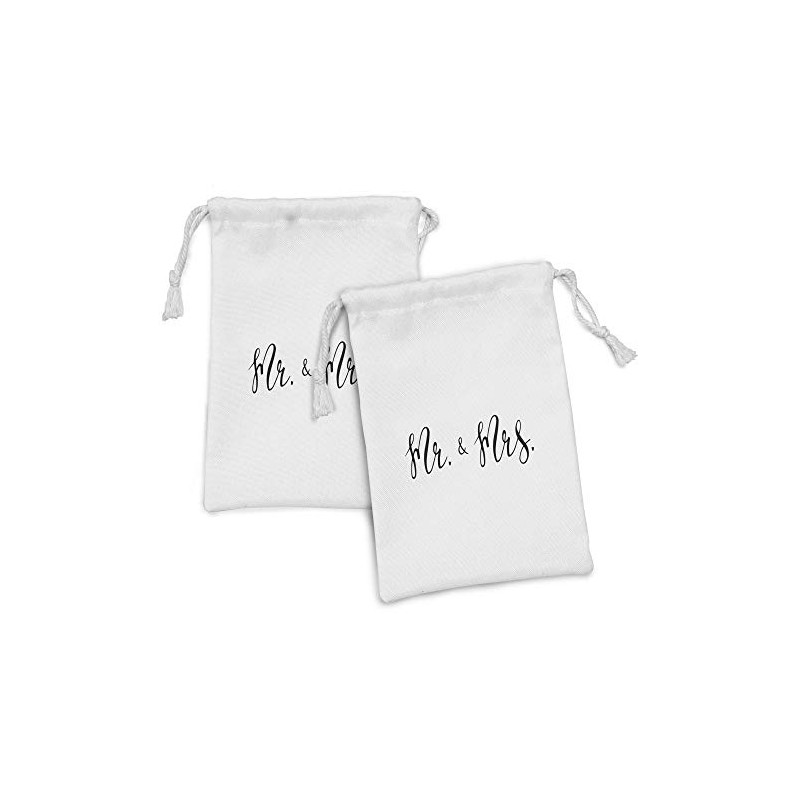 Ambesonne Engagement Party Fabric Pouch Set of 2, Simplistic Mr and Mrs Text Caligraphic Fountain Pen Writing Design, Small Drawstring Bag for Toiletries Masks and Favors, 9" x 6", Black and White