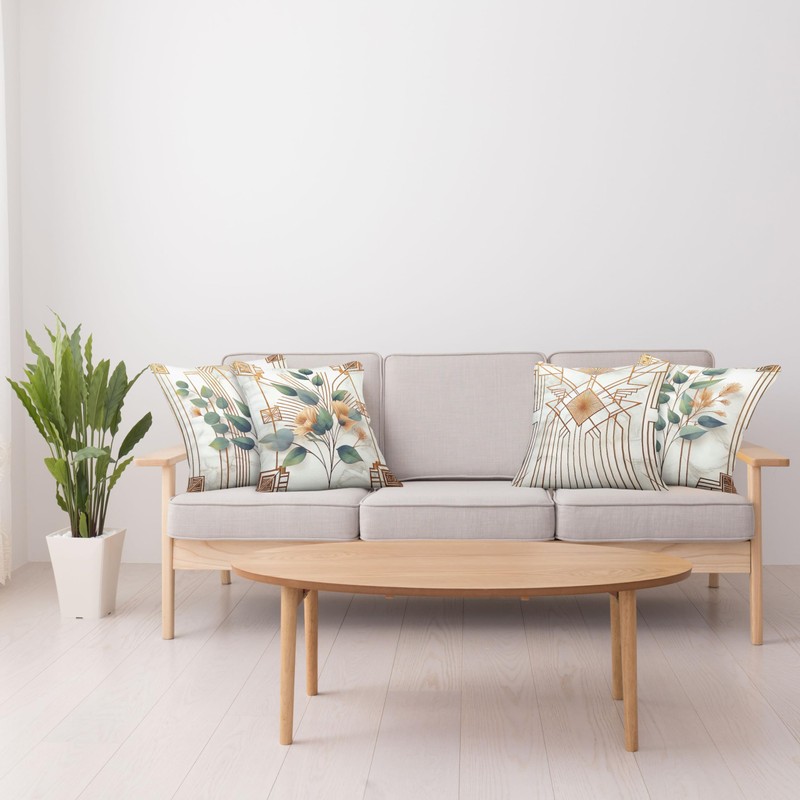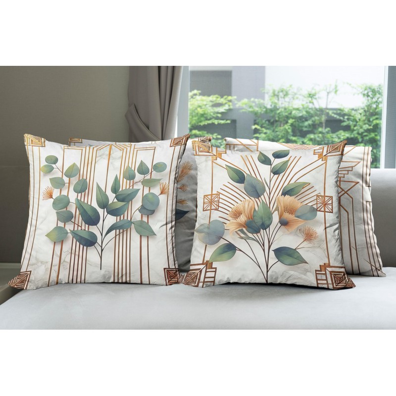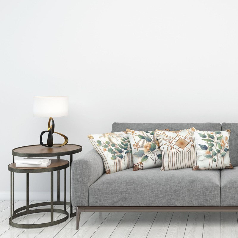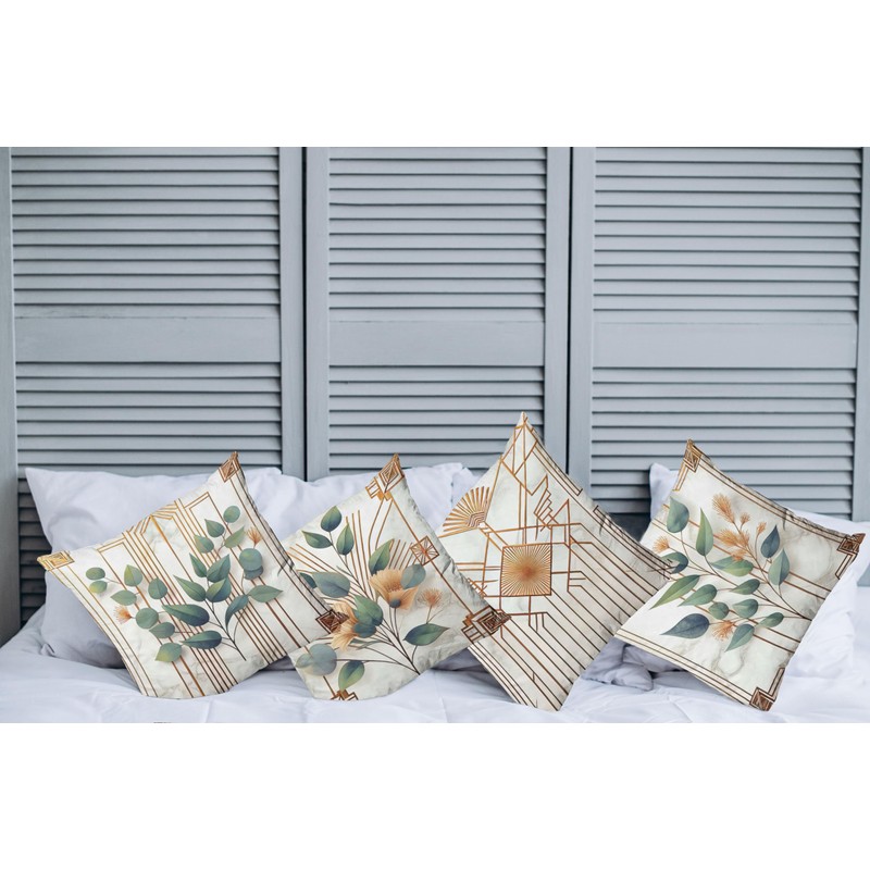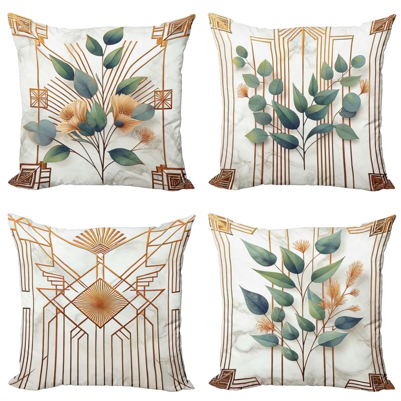 Ambesonne Eucalyptus Throw Pillow Cushion Cover Set of 4, Botanical Leaves and Flowers with Antique Abstract Geometric Motif, Decorative Accent Double-Sided Printing, 24", Cinnamon Blue Grey Green