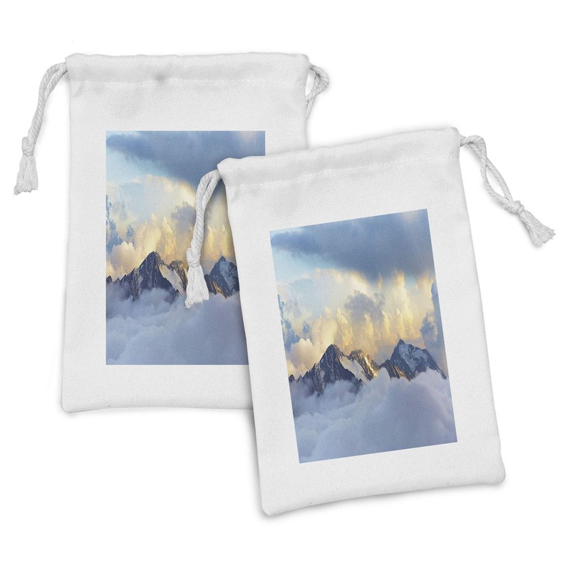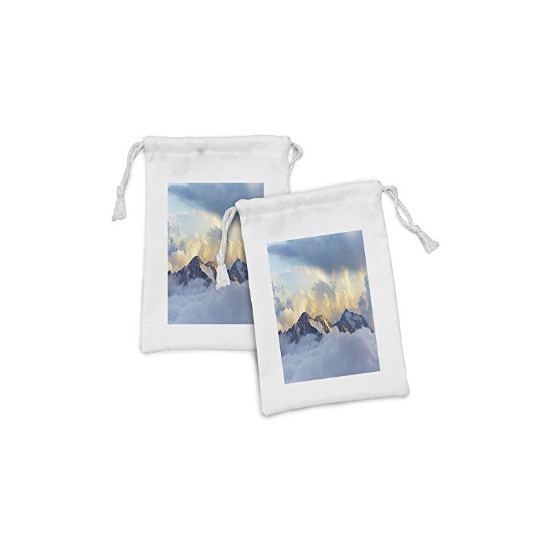 Ambesonne Europe Fabric Pouch Set of 2, Alpine Landscape with Peaks Covered by Snow Clouds Panoramic View Picture, Small Drawstring Bag for Toiletries Masks and Favors, 9" x 6", Charcoal Grey White