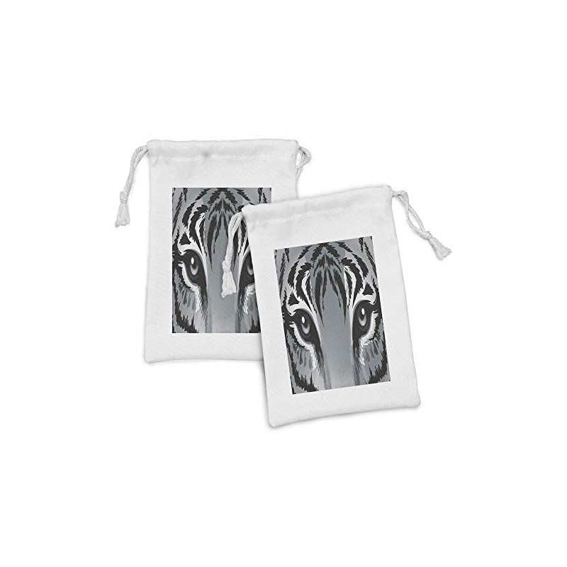 Ambesonne Eye Fabric Pouch Set of 2, Tiger Sharp Eyes Monochrome Wildlife Animal Illustration Felidae Carnivore, Small Drawstring Bag for Toiletries Masks and Favors, 9" x 6", Grey Black White