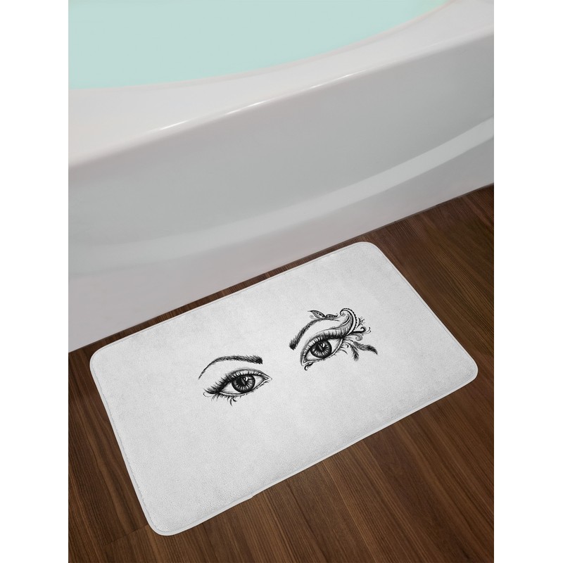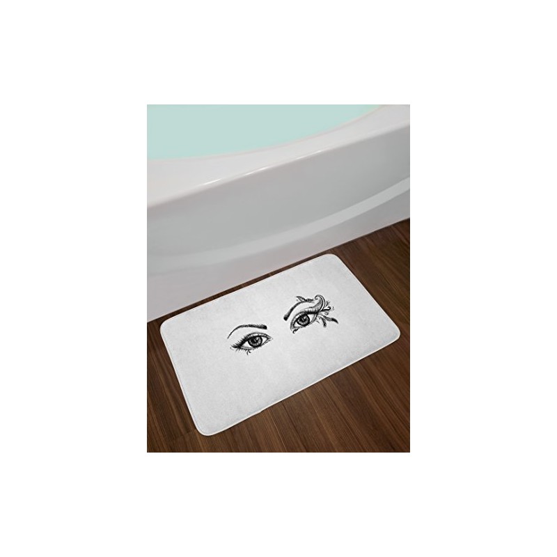 Ambesonne Eyelash Bath Mat, Monochrome Drawing of Young Woman Eyes Feathers B...