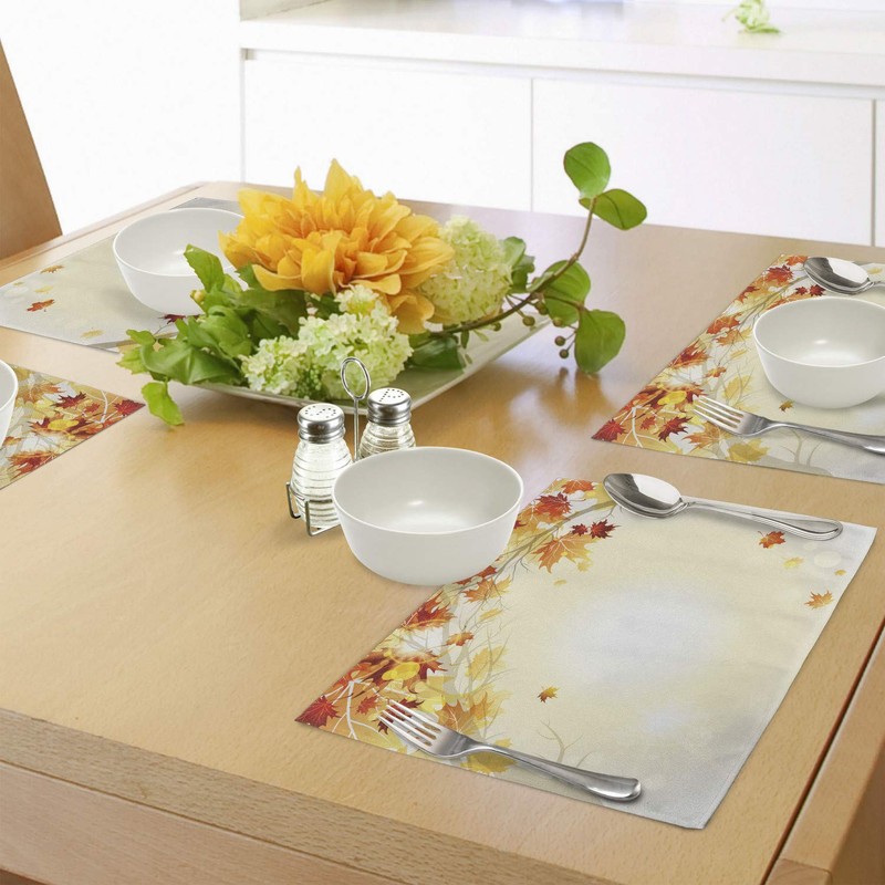 Ambesonne Fall Place Mats Set of 4, Soft Image of Faded Shedding Fall Leaves from Tree Motion in Nature Concept Print, Washable Fabric Placemats for Dining Table, Standard Size, Orange and Yellow