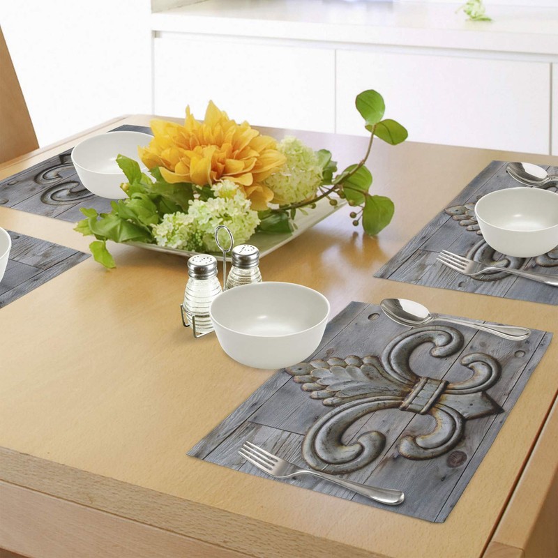 Ambesonne Fleur De Lis Place Mats Set of 4, Lily on Weathered Old Wooden Plan...