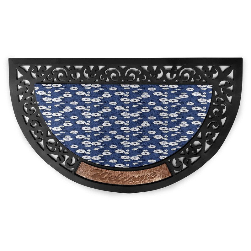 Ambesonne Floral Doormat, Repetitive Blooming Clove Flowers on Dark Tone Backdrop, Semi Circle Entryway Welcome Mat for Front & Backard 2 Pieces, 19.6" x 31.4", Night Blue Cream